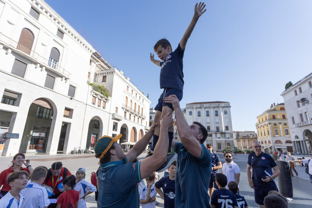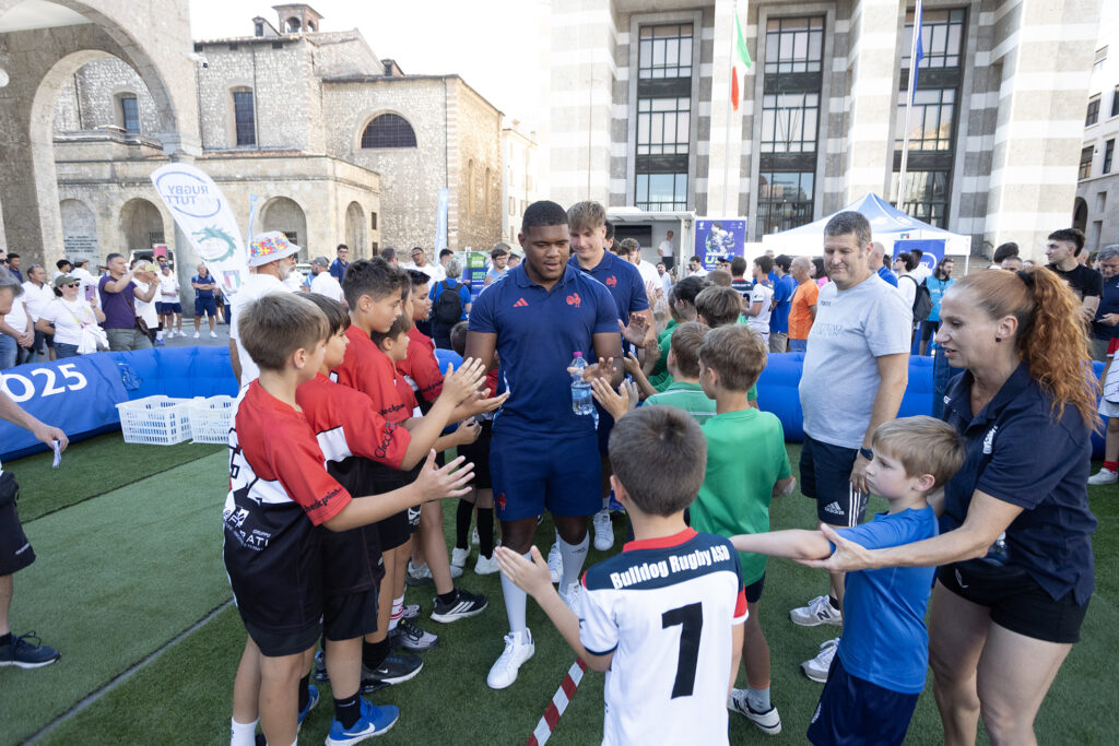 Sulla stessa linea l’intervento di Leonardo Ghiraldini, ex Azzurro e oggi consigliere federale della FIR, che ha voluto sottolineare il valore educativo e sociale del rugby: «Celebriamo l’inizio di un evento internazionale ma anche i valori che questo sport insegna. In piazza ci sono anche bambini, bambine e ragazzi con disabilità, a dimostrazione che il rugby è uno sport per tutti. Viverlo nei suoi valori più profondi aiuta ad affrontare meglio anche i momenti difficili, giocando insieme e divertendosi all’aria aperta».