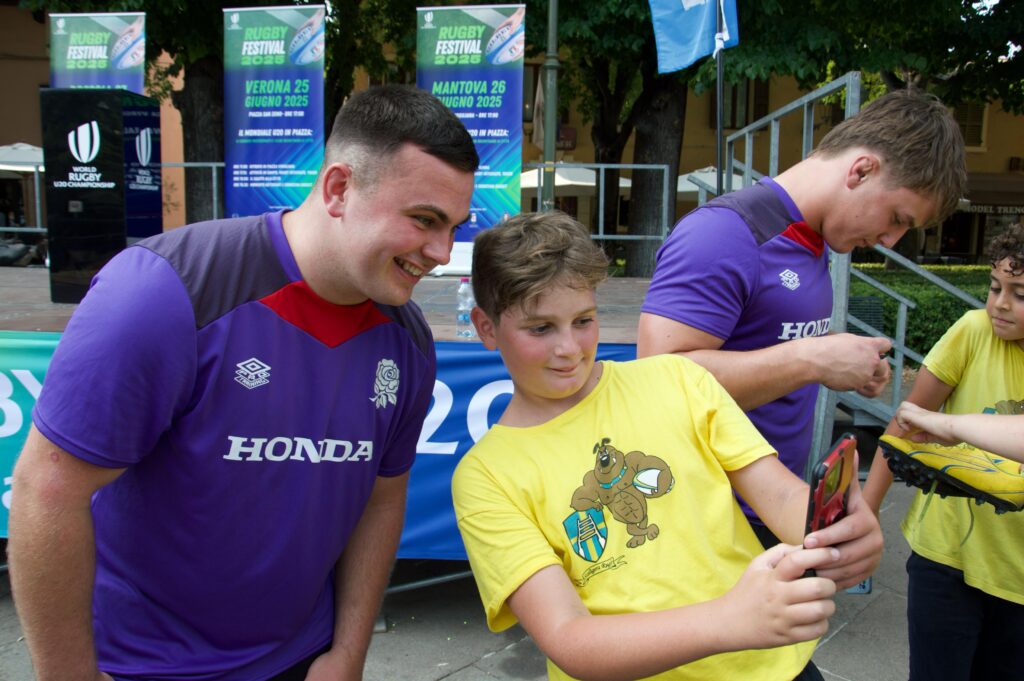 In piazza erano presenti anche alcuni giocatori delle Nazionali Under 20 della Georgia e dell’Inghilterra, che hanno fatto da “sparring partner” ai piccoli atleti tra giochi, selfie, autografi e fotografie con la Coppa del Mondo Under 20, esposta sul palco in bella mostra.