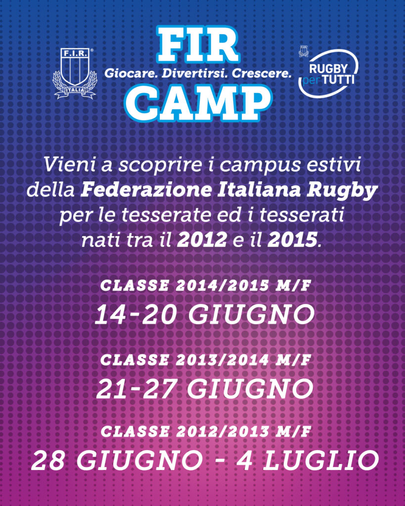 Ogni FIR Camp inizierà domenica pomeriggio per concludersi il sabato della settimana successiva con un Terzo Tempo a cui parteciperanno, insieme allo staff dei FIR Camp ed agli atleti, anche i genitori.