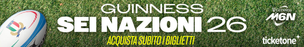 La Federazione Italiana Rugby informa che, a partire da giovedì 10 luglio, sono disponibili tramite il ticketing partner ufficiale TicketOne i biglietti per le due gare interne dell’Italia nel Guinness Sei Nazioni 2026 allo Stadio Olimpico di Roma.