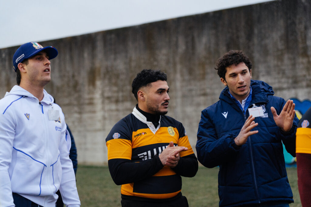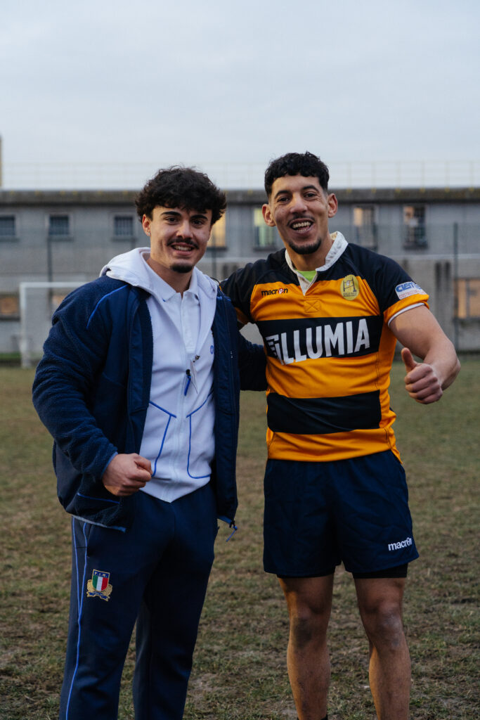 Il primo evento del 2026 di “Rugby Oltre le Sbarre” si è svolto a Bologna e ha coinvolto il Giallo Dozza Bologna Rugby, squadra che grazie alla normativa specifica rivolta alle società impegnate in progetti a forte impatto sociale partecipa al campionato federale di Serie C. Dopo gli interventi istituzionali di Macron e della Federazione Italiana Rugby gli atleti della squadra hanno avuto modo di fare una serie di esercizi con i campioni dell’ItalRugby presenti: l’atleta della Nazionale Femminile Alessandra Frangipani, i giocatori della Nazionale Maschile Simone Gesi e Jacopo Trulla e dall’Accademia FIR Fabio Salvanti e Nikolaj Varotto.