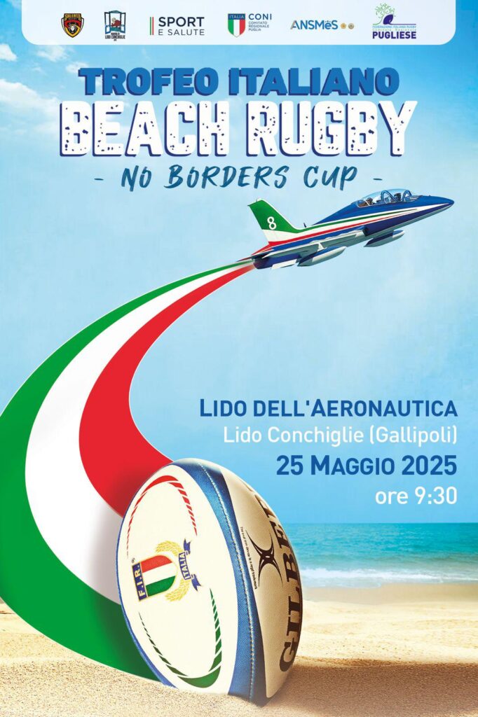 Il grande rugby da spiaggia torna nel cuore del Salento con una tappa ufficiale del Trofeo Italiano Beach Rugby 2025. Domenica 25 maggio, in località Lido Conchiglie (Gallipoli), sei squadre si contenderanno la prima edizione della No Borders Cup, torneo nato per celebrare il rugby senza confini. In campo scenderanno i Rockets (Lazio), i Lions (Napoli), il Salento Rugby – società organizzatrice, gli Spruzzi Pazzi (Ancona), il Trepuzzi e l’Appia Rugby Brindisi.