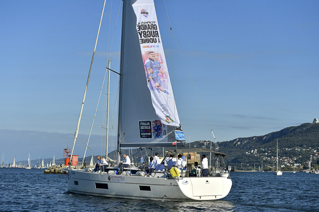A portare in mare una vela che ricordava l’appuntamento dell’8 novembre, quando a Udine l’Italia di Gonzalo Quesada ospiterà l’Australia (con calcio d’inizio alle 18.40 al Bluenergy Stadium), tra gli altri, il Presidente FIR Andrea Duodo, il Presidente del Comitato Regionale del Friuli Venezia-Giulia Emanuele Stefanelli, e gli Ex Azzurri Silvia Pizzati, Leonardo Ghiraldini, Matteo Mazzantini e Carlo Checchinato, rispettivamente ora consiglieri Federali e Direttore Commerciale FIR. Assieme a loro, rappresentanti del marketing e dei tecnici federali.