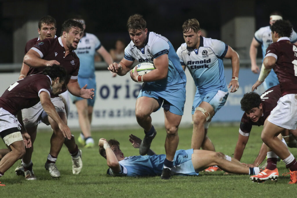 Il programma serale prevedeva, sempre a Calvisano, lo scontro tra Georgia e Scozia per la nona posizione. Finisce 22 a 7 per i Junior Lelos, che si aggiudicano il piazzamento dopo un match duro ma sempre condotto, con quattro mete segnate contro una sola degli scozzesi.